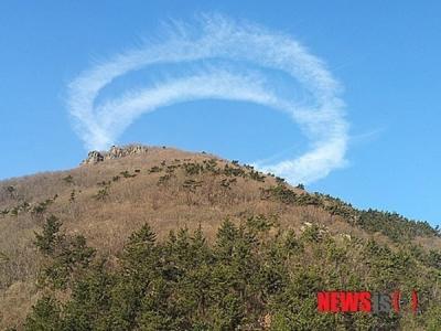 韩国雪屹山出现神秘圆形云 (神秘的地球uux.cn)2013年2月在庆尚南道南海郡梯田...