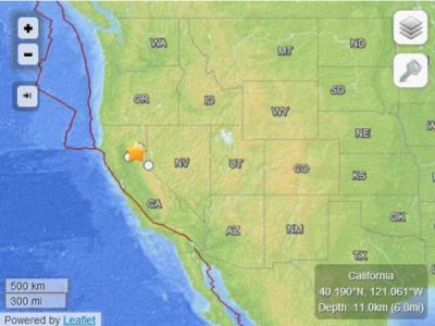 美国加利福尼亚州北部发生里氏5.7级地震 据美国地质勘探局网站消息,北京时间24...