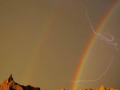 美国荒地国家公园惊现”一道闪电同时穿透两道彩虹” 资料图:双彩虹 资料图...