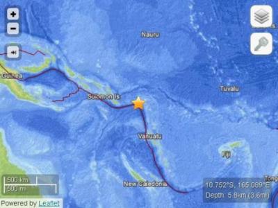 圣克鲁斯群岛发生里氏8.0级地震 北京时间2月6日9时12分,太平洋所罗门群岛东南部...