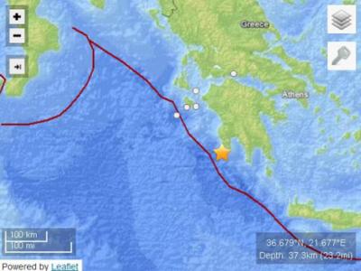 地中海海域发生里氏5.0级地震 希腊当地时间17日早上7点42分,距离希腊首都雅典2...