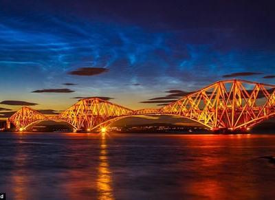 摄影师艾德里安-马里西斯(Adrian Maricic)在第四铁路桥拍摄到美丽的夜光云,该云...