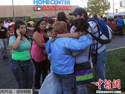 当地时间3月25日,在智利塔尔卡,地震发生后,人们走上街头避难。 当地时间3月...