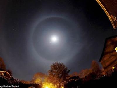观天爱好者格雷格-帕克教授捕捉到罕见的“月晕”奇观,这种视觉效果是由空气里的...