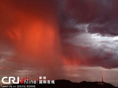 美国加州好莱坞上空彩虹与闪电同时出现 美国加州好莱坞上空彩虹与闪电同时出现...