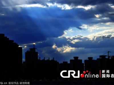 2010年10月2日傍晚,阴转多云天气,北京上空出现了“光瀑”景象,乌云挡不...