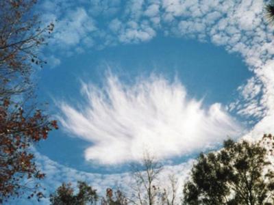 揭秘穿洞云:飞机穿越高空云层形成 观测飞机拍摄的视频显示,一组高积云上的圆...