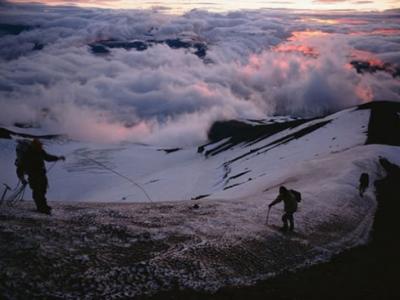 美国俄勒冈州胡德火山 如图,登山者正在跨越俄勒冈州最危险的火山胡德火山。...
