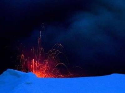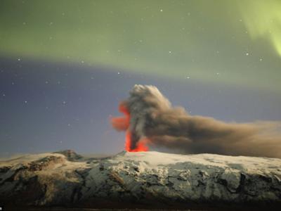 北极光与埃亚菲亚德拉冰盖火山喷涌的熔岩交融,在月光下跳起绚丽的舞蹈 北极光...