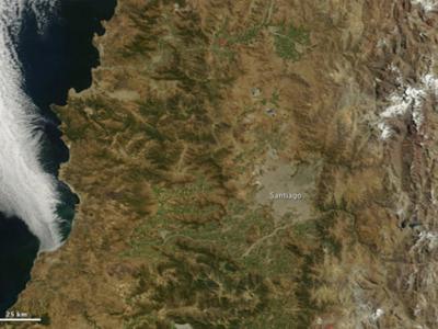 卫星拍到大地震后智利首都上空黑烟