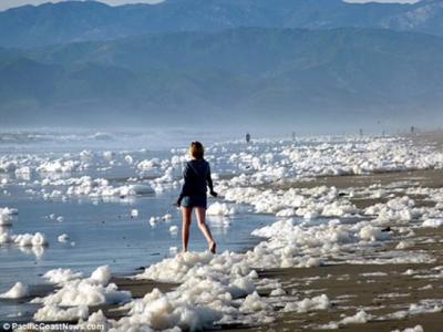 美国加州海岸因海啸出现大量巨大泡沫