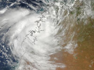 TRMM卫星根据各种数据得到热带气旋“马格达”的三维图,显示了云层高度和降雨量。...