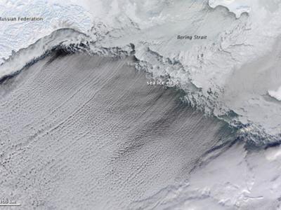 白令海峡上空出现壮观的云街现象 据美国宇航局官网报道,2010年1月中旬,白...