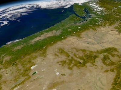 华盛顿州海岸地区的卫星影像图 北美板块和胡安德富卡板块滑移示意图 据美...