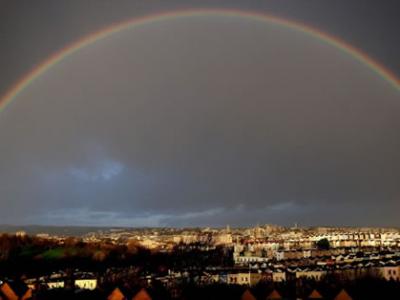 英国小镇暴雨后后的壮观彩虹 据英国《每日邮报》报道,常言道,乌云背后是彩...