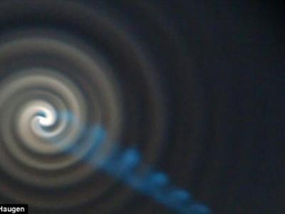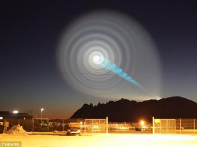 青绿色光束从神秘螺旋体中心喷射而出 挪威北部居民对夜空中出现的神秘之光大惑...
