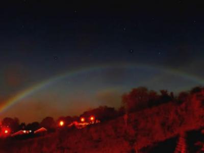 这张拍摄于英国北约克郡里奇蒙的照片,显示的是在夜间由于月光形成的神奇夜间彩虹...