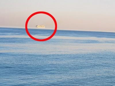 海市蜃楼“上蜃景”:英国男子在多塞特郡伯恩茅斯海岸拍到巨大邮轮飘浮在空中(神秘...