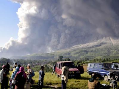 印度尼西亚苏门答腊岛北部的锡纳邦火山3月2日喷出高达4000-5000米的灰柱(神秘的地...