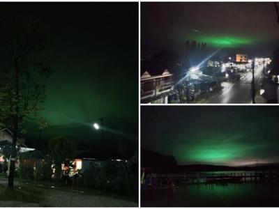 泰国南部多处地方出现罕见异象 日落后天空现绚丽绿光有人指绿光可能来自缅甸渔船。...