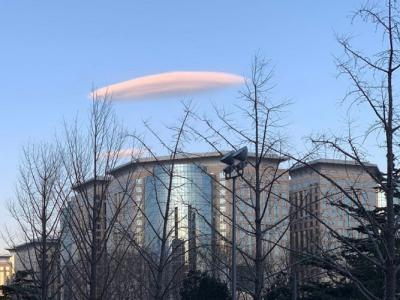 北京天空现粉色“UFO”云 北京气象局:荚
