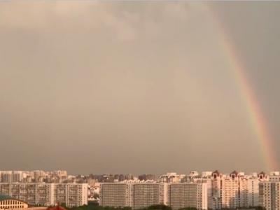 北京部分地区大雨过后出现同心双彩虹景观