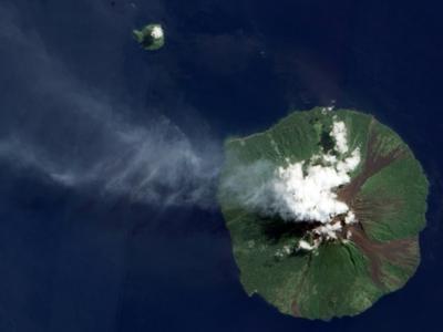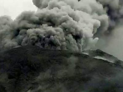卡兰吉田火山喷出大量气体。卡兰吉田火山活动近日趋活跃。(神...