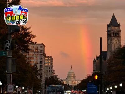 美国华盛顿选民步出票站拍下美丽夕阳彩虹(神秘的地球uux.cn报...