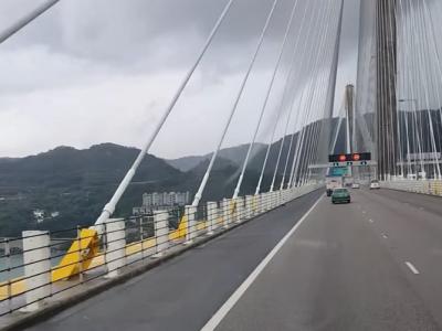 水龙卷几乎与桥上车辆擦身而过。(Facebook群组“香港突发事故...