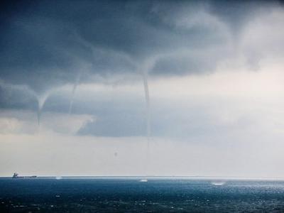 巨型龙卷风似在向执法船只方向移动。佛山水域附近出现龙卷风。...