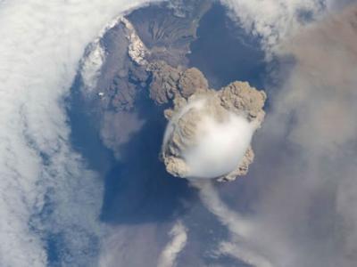 千岛群岛埃别科火山喷出高达2500米的火山灰