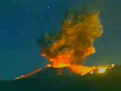 意大利埃特纳火山正慢慢向西西里岛海岸方