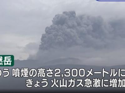 新燃岳火山再度喷发。有火山灰落在附近城市。(神秘...