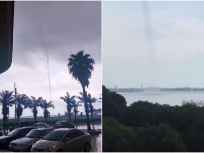 广东湛江市霞山区观海长廊对开海面出现称为“龙吸水”的水龙卷现象 (神秘的地球...