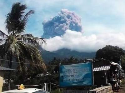 印尼龙目岛巴鲁贾尼火山喷发 政府派员救
