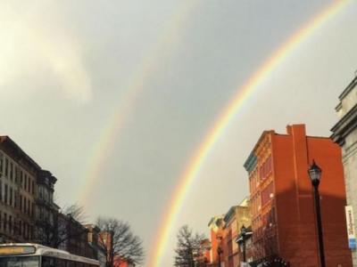 美国纽约巿雨量破百年纪录 现罕见双彩虹