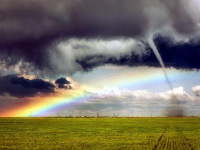 美国父子追风拍到壮观一幕:龙卷风彩虹同现