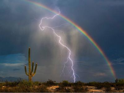 摄影师拍下一生难得一见的场景:闪电和彩虹同一时间在天际出现 (神秘的地球报道...