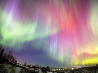 俄罗斯首都莫斯科及该国中央区多地居民17日晚有幸目睹极光 阿尔汉格尔斯克天空...