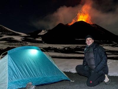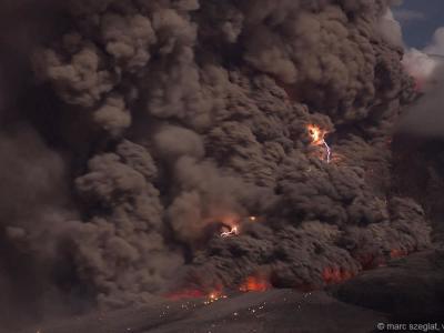 施格拉勇闯樱岛火山,拍摄爆发的惊险一刻。 火山爆发时产生犹如闪电一样的光影...