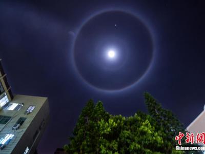 福建平潭夜空出现罕见“月晕”景象 (神秘的地球报道)据中新网(蔡起辉...