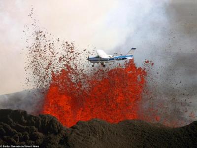 飞机穿越冰岛Holuhraun火山时突遇火山喷发