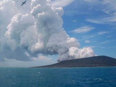 近期汤加一座火山喷发,导致在海面上形成一个新的岛屿,岛屿高度100米。 (神秘...