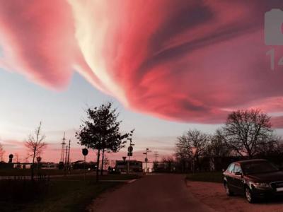 施瓦尔特(Julian Schwald)拍摄到的奇幻红云,宛如烈焰腾空。 (神秘的地球报道...
