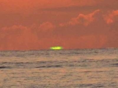 日本男子傍晚在濑长岛拍摄到绿色日落奇观 (神秘的地球报道)日本冲绳县男子野田...