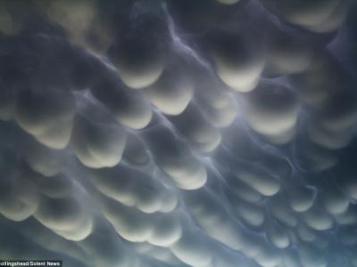 美国风暴追逐者在内布拉斯加州拍摄的壮观“乳房云”(Mammatus clou...