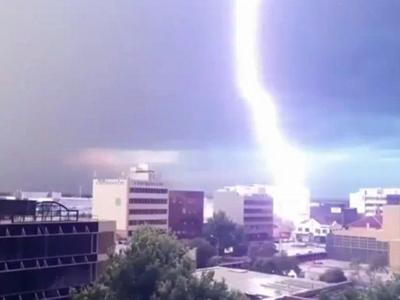 麦吉当时正在观察纽卡斯尔上空的风暴卷,意外拍摄到闪电击中大楼一幕。 闪电...