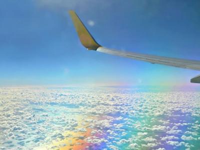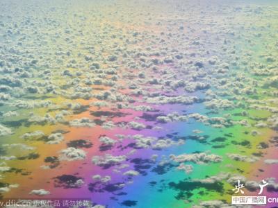 加拿大摄影师在加勒比海上空拍摄到罕有的万花筒云海奇观 云海下的7色彩虹鲜艳...