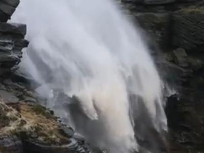 受飓风“贡萨洛”影响英国德比郡一条高达24米的瀑布出现罕见的倒流现象 (神秘的...
