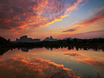 广东的世界自然遗产地丹霞山傍晚天空出现“火烧云”奇景 (神秘的地球报道)入...